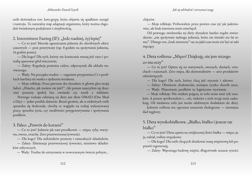 "Książka Aleksandra Daniela Szycika to wyjątkowe podejście do tematu odchudzania, w którym kluczową rolę odgrywa psychologia, a nie rygorystyczne diety. Autor obala mit 'szybkich rozwiązań' i koncentruje się na emocjach, motywacji i zmianie nawyków."